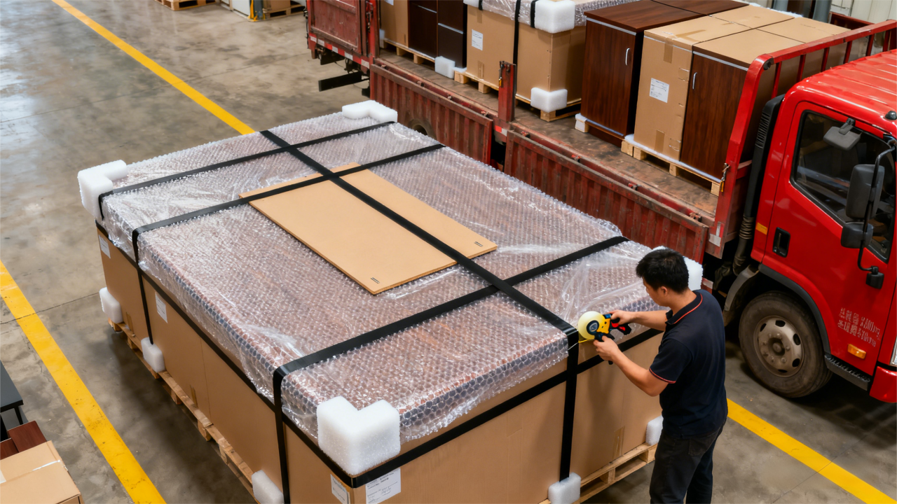 包装操作:对家具进行包装,包括套袋、装箱、填充缓冲材料等。