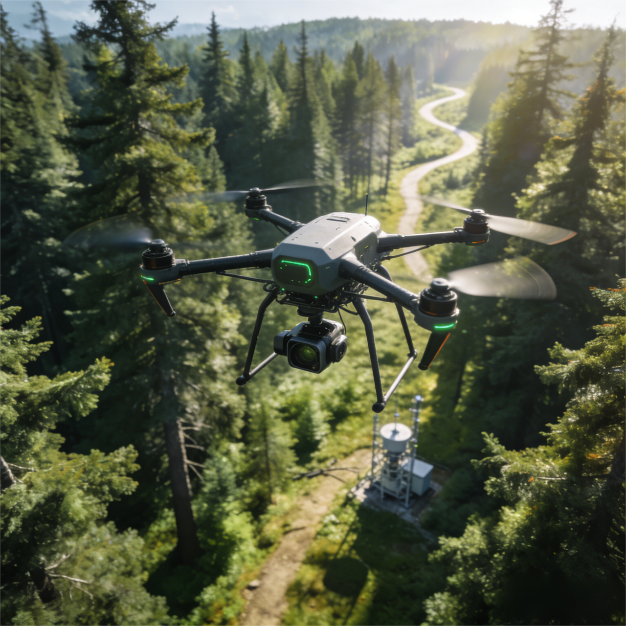 2、数据采集:无人机按照规划的路线和高度进行飞行,同时搭载的高分辨率相机或其他传感器对林场进行扫描和数据采集。采集的数据包括林场的影像、地形、植被等信息。